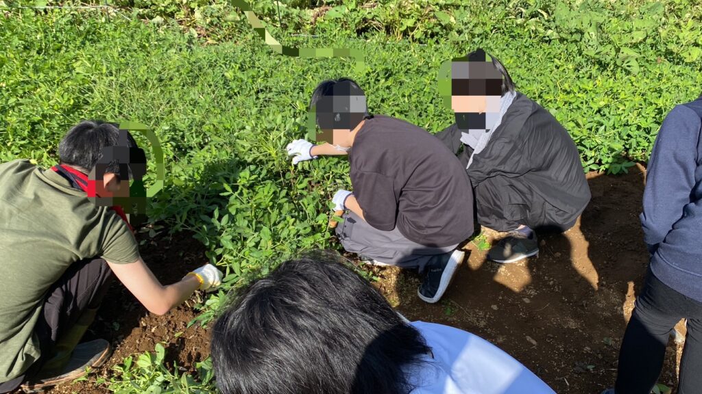 最初は乗り気でない様子の生徒もいましたが、実際畑で農家の方が収穫のお手本を見せると自分もやりたくなったのか、うずうずしている様子でした笑