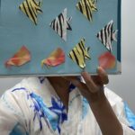 生徒たちに海の生き物の画像を見せて英語名を教えたあとはいざLet’s fish!!先生自ら一つ一つ丁寧に折った折り紙で楽しく釣りをしましょう♪