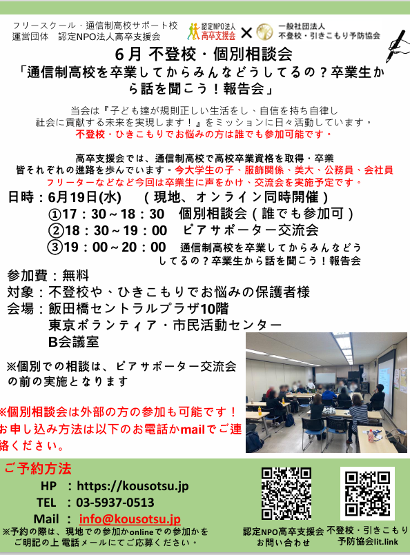6月のピアサポーター交流会は通信制高校を卒業した方々を呼びました!