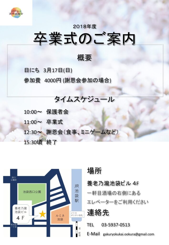 【教室通信】第三学期補欠募集に向けて